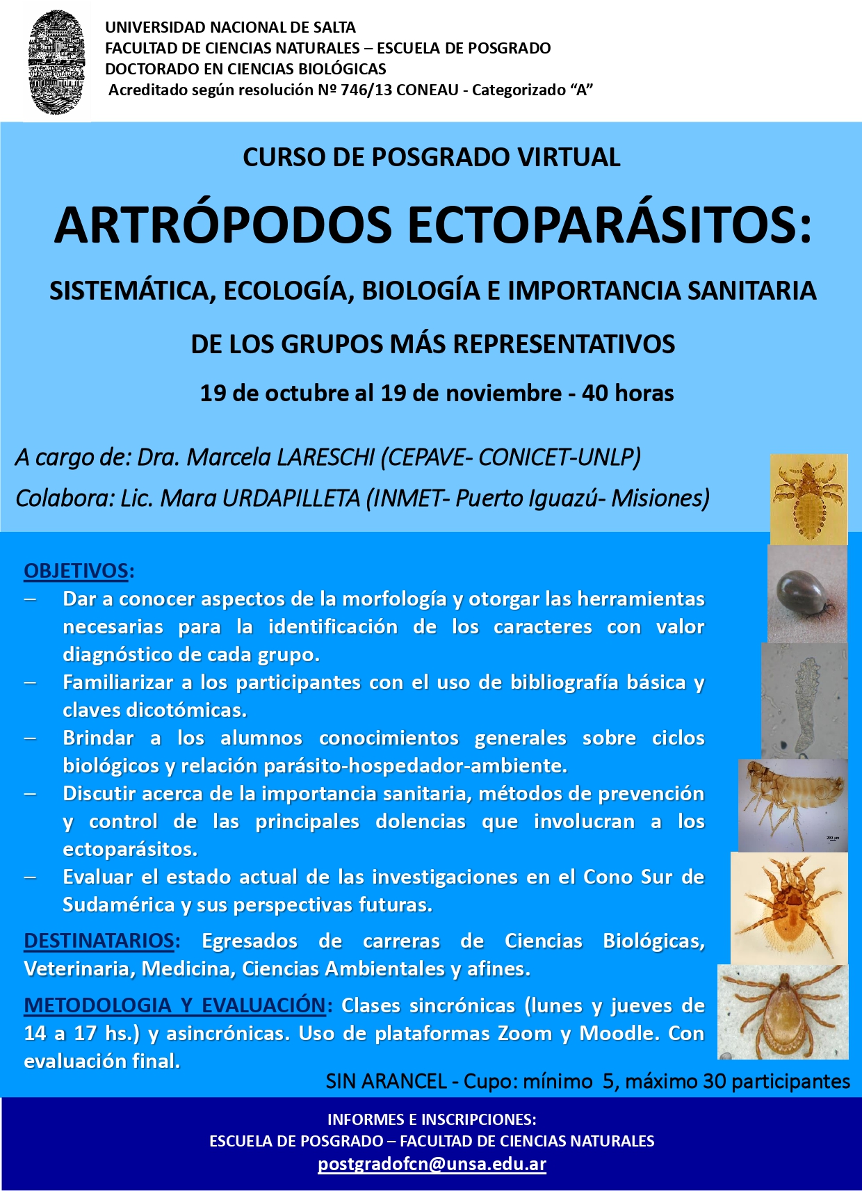 Curso de Postgrado virtual y gratuito. «ARTRÓPODOS ECTOPARÁSITOS: SISTEMÁTICA, ECOLOGÍA, BIOLOGÍA E IMPORTANCIA SANITARIA DE LOS GRUPOS MÁS REPRESENTATIVOS» .